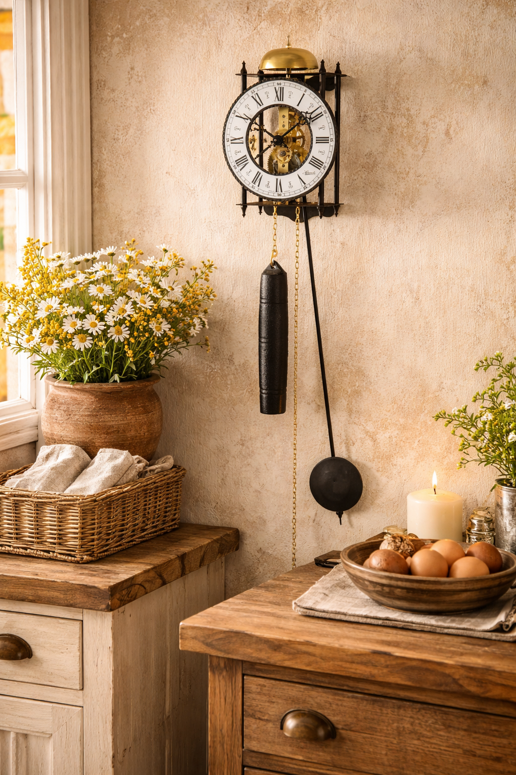 A mechanical marvel with centuries of pedigree. Modeled after the late-16th-century “castle clocks” prized across Germany and Switzerland, this Castle Skeleton Clock showcases time’s inner poetry—exposed brass gears, pendulum, verge escapement, and a top bell that chimes on the hour. Hand-assembled by German maker Hermle (est. 1922), it’s both historical benchmark and modern heirloom.