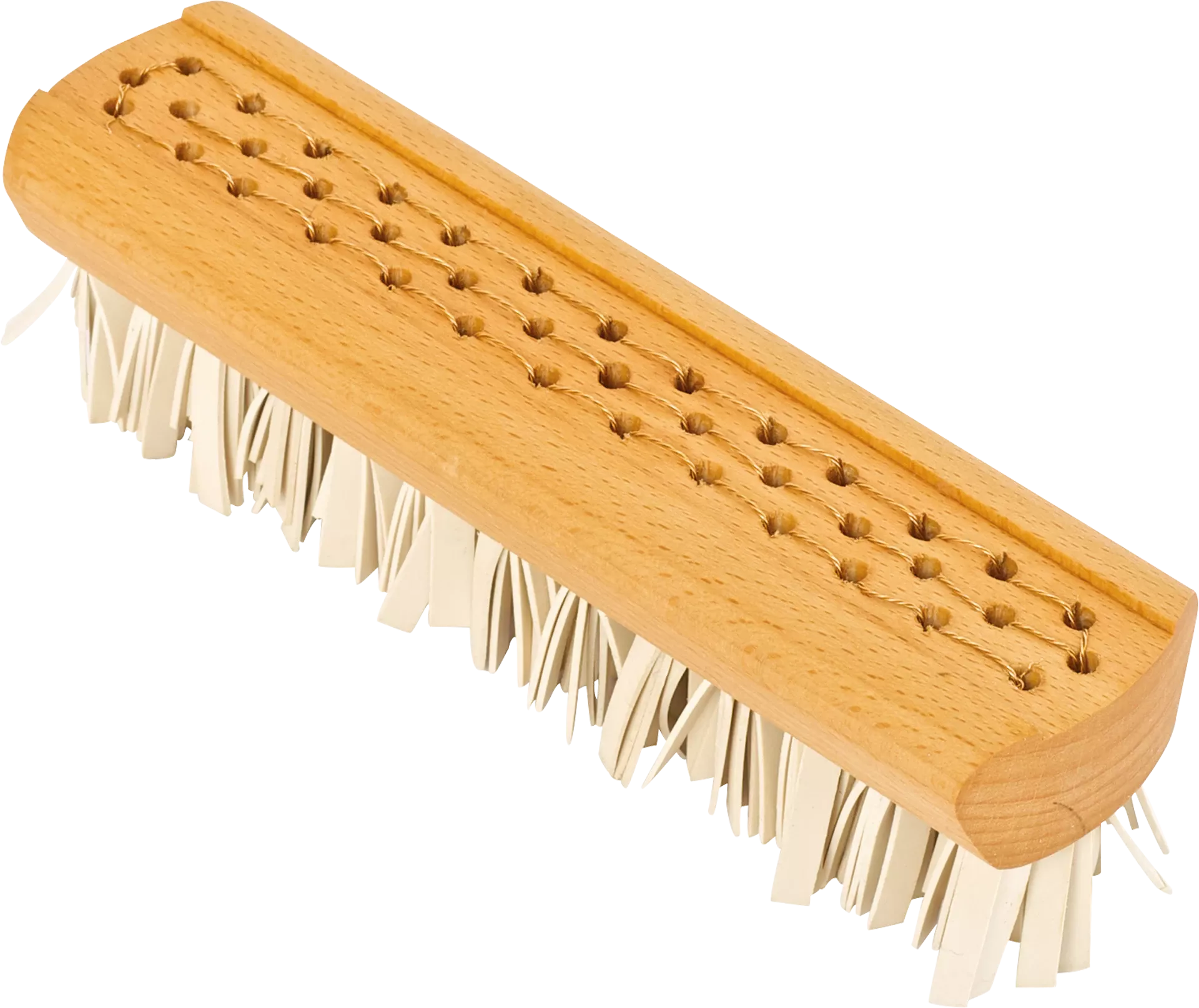 We call it “lint” politely, when actually this is your frontline defense against dog and cat hair, that get’s all over the furniture, and your bed, if the critters snuggle up with you! Simply clean by hand, or rinse in water. Waxed beech handle, copper wire holds the natural rubber bristles. 7 ¼” x 2” x 2”