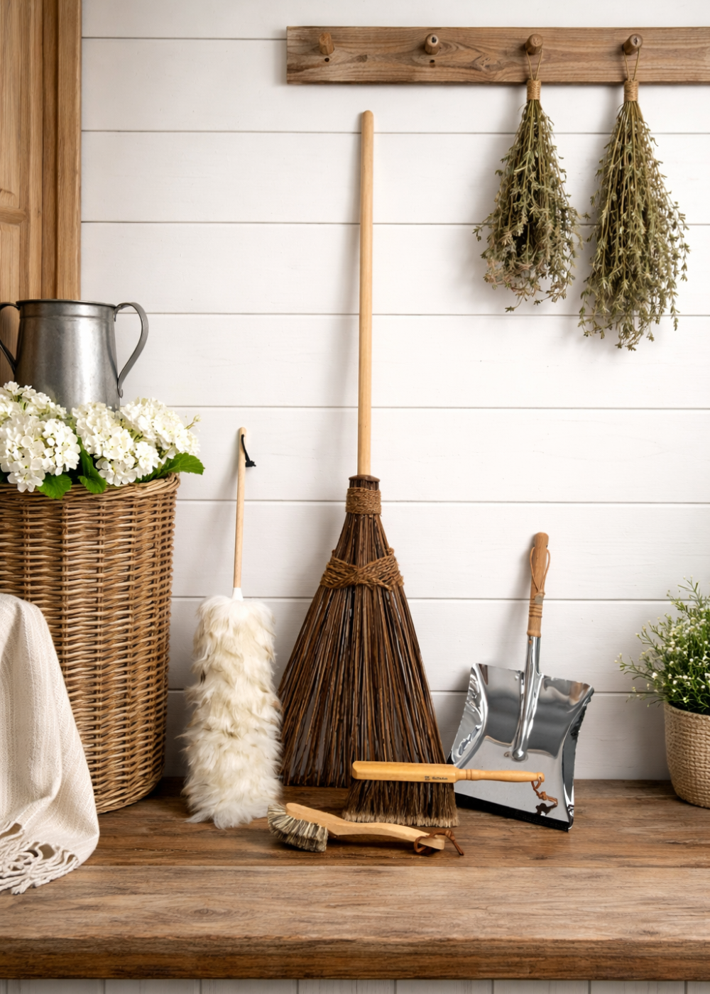 Clean smarter, not harder. This customer-favorite bundle pairs four premium tools that outperform plastic lookalikes and last for years: the Witch’s Broom, Classic Lambswool Duster, The Best Foxtail Pan & Brush Set, and the Union Fibre Dish Brush. Together, they tackle floors, shelves, counters, and dishes with satisfying ease.
